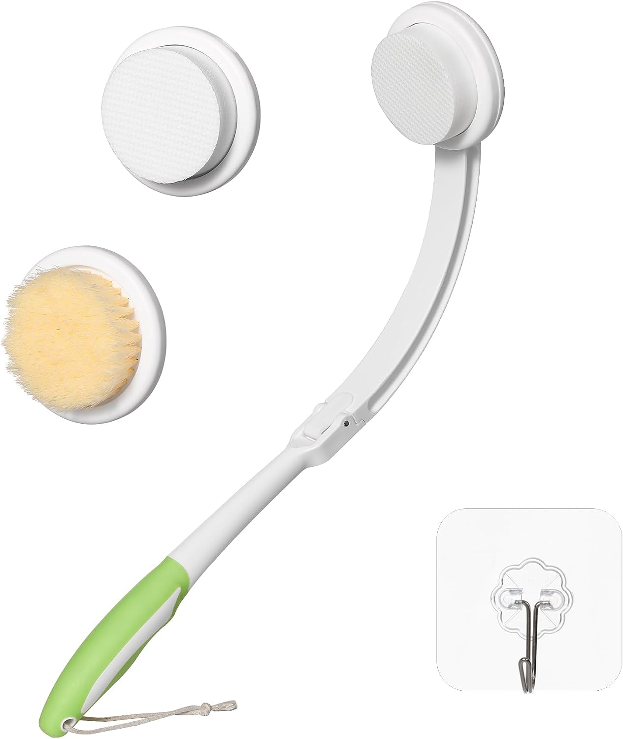 - ๐๐๐๐ค๐๐ ๐ ๐๐จ๐ง๐ญ๐๐ง๐ญ๐ฌ: Fanwer 3 in 1 Bath Brush contains a 18.9in handle and 3 replaceable heads - nylon brush, and 2pcs lotion applicator. Available in 3 combinations to meet your daily bathing needs.Also comes with a sticky hook.