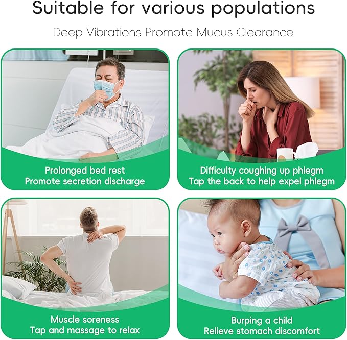 - Ergonomic Design Replaces Traditional Hand Patting: The ergonomic design of the back patting device replaces traditional hand patting, providing a more effective way to help expel phlegm. It reduces discomfort and the risk of injury, ensuring a comfortable and efficient phlegm removal process.